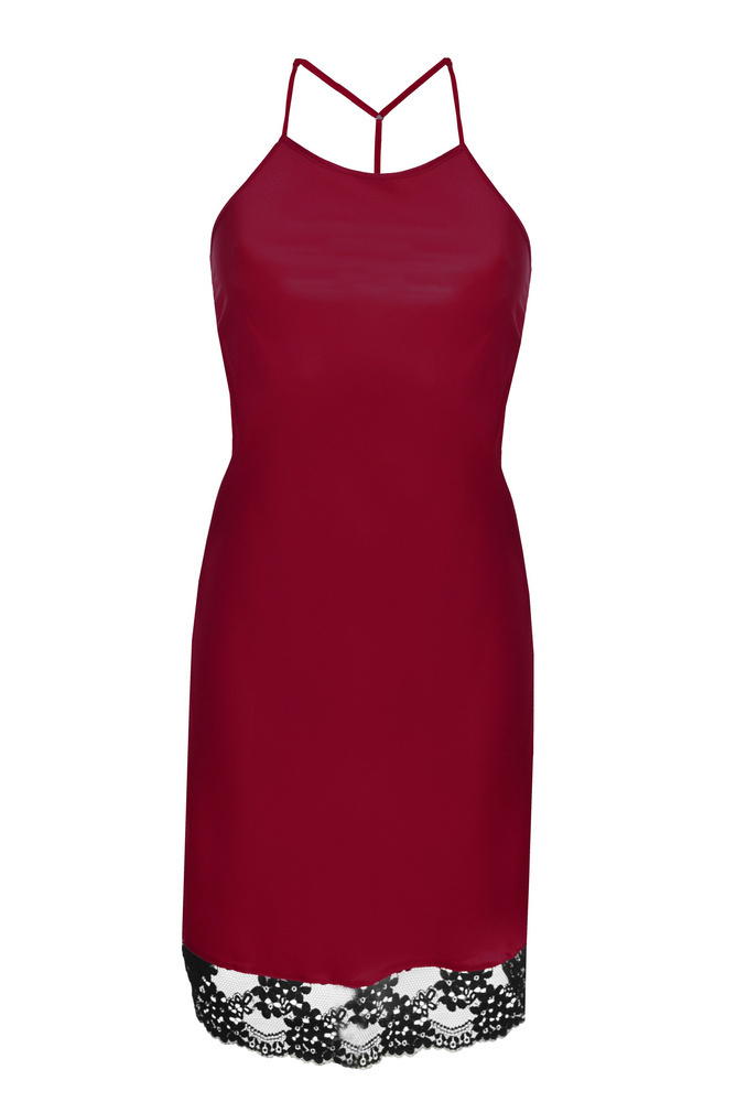 Zmysłowa satynowa haleczka.  Przód lamowany z wyciętym tyłem przyozdobionym delikatną koronką. Ramiączka cienkie regulowane tworzące literę Y na plecach. Dostępna w różnych kolorach z czarną koronką.