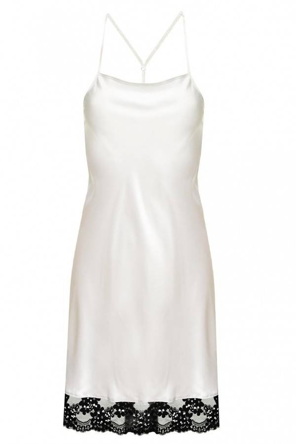 Ramiączka cienkie i regulowane dzięki którym można dopasować długość koszulki wedle własnego komfortu. Dół haleczki wykończony delikatną koroneczką. Halkę wykonano z najwyższej jakości delikatnej szlachetnej satyny.