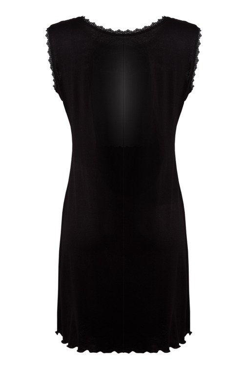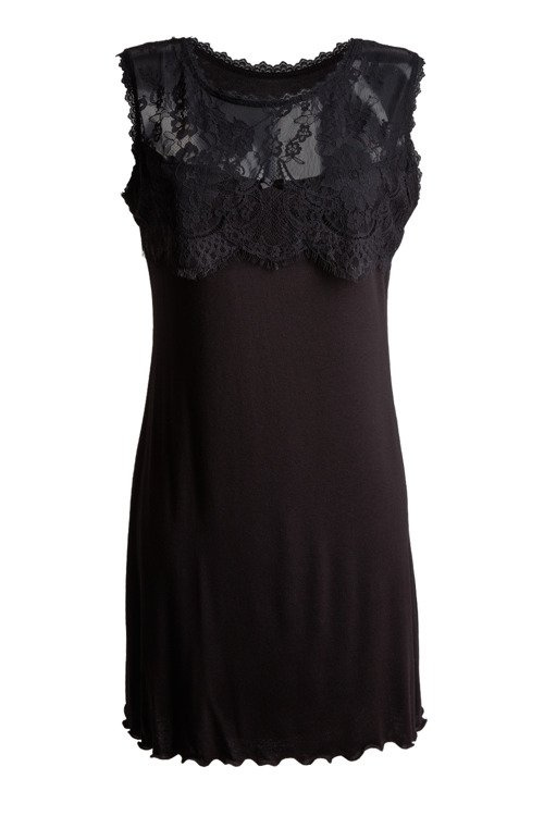 Prosta wiskozowa haleczka Nadia firmy DKaren, wykonana z bardzo przyjemnej wiskozowej tkaniny, na szerokich wygodnych ramiączkach. Górę koszulki zdobi wzorzysta śliczna czarna koronka.