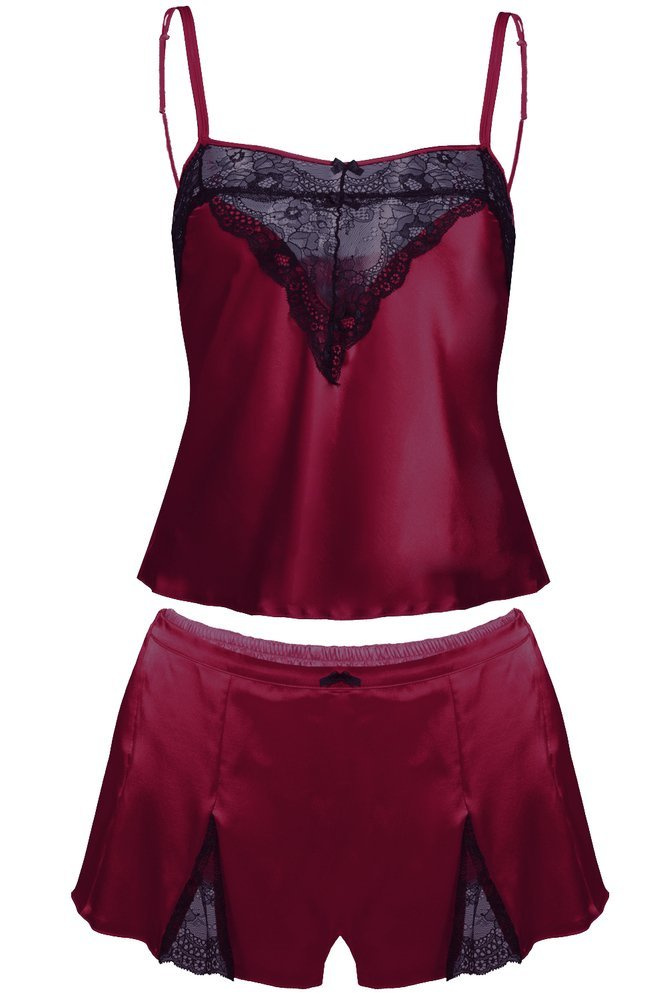 Satynowy komplecik w który skład wchodzi koszulka oraz spodenki. Górę koszulki zdobi delikatna, zmysłowa koronka na dekolcie. Satyna Jasny Ecru z Ecru koronką reszta kolorów satyny z czarną koronką.