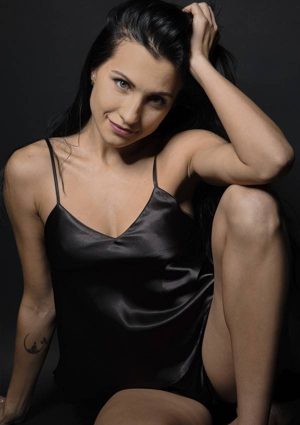Satynowy komplet Karen firmy DKaren. Składa się z koszulki i spodenek. Przód koszulki tworzy delikatny, trójkątny dekolt. Spodenki na cienkiej gumce, bardzo wygodne w noszeniu.