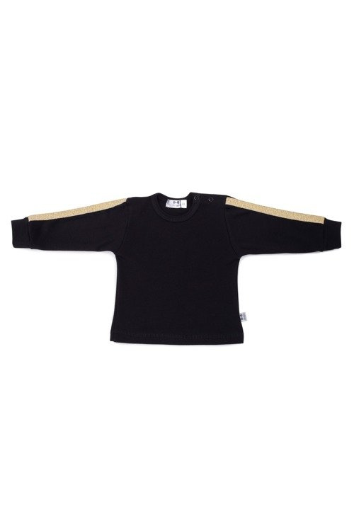 Zapytaj o produktMięciutka i wygodna bluzka w kolorze czarnym, z lampasem na rękawach. Wykonana z 100% bawełny. Rozpinana na ramionku na antyalergiczne, bezniklowe napki.