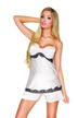 Wygodny i uroczy komplet satynowy składający się z koszulki oraz szortów. Spodenki zostały skrojone w taki sposób, aby dawały maksimum wygody podczas noszenia, a jednocześnie seksownie podkreślały krągłości pośladków.
