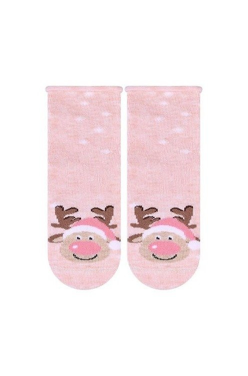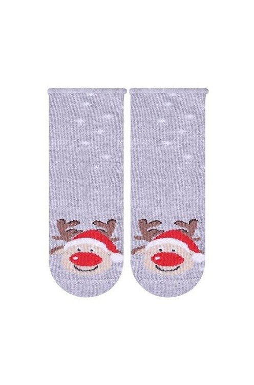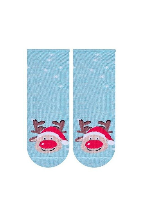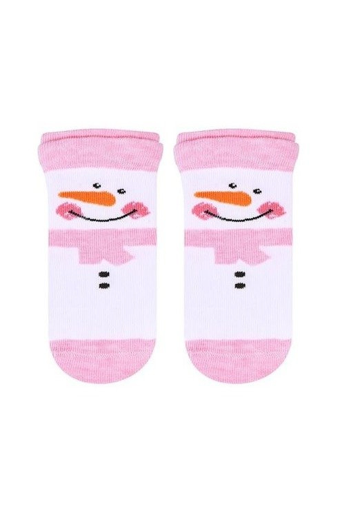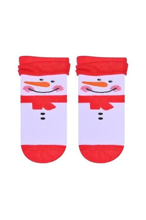Wygodne i miękkie skarpety dziecięce z zabawnymi, zimowymi motywami. Zakończone wygodnym nieuciskającym ściągaczem.