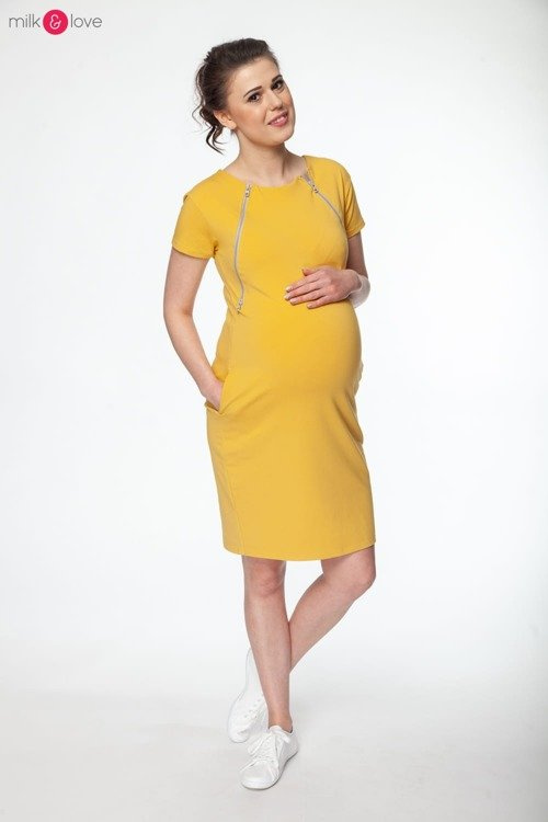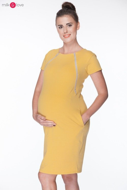 Sukienka do karmienia i ciążowa Fast Food Milk&Love musztardowa