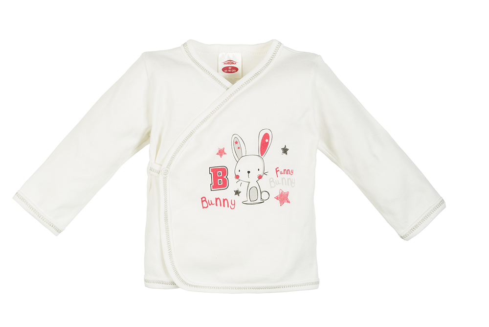 Zapytaj o produktKaftanik niemowlęcy z aplikacją króliczka. Wykonany ze 100% bawełny. Zapinany kopertowo,na wierzchu na dwie malutkie napy, a pod spodem na jedną. Wykończony lamówką.