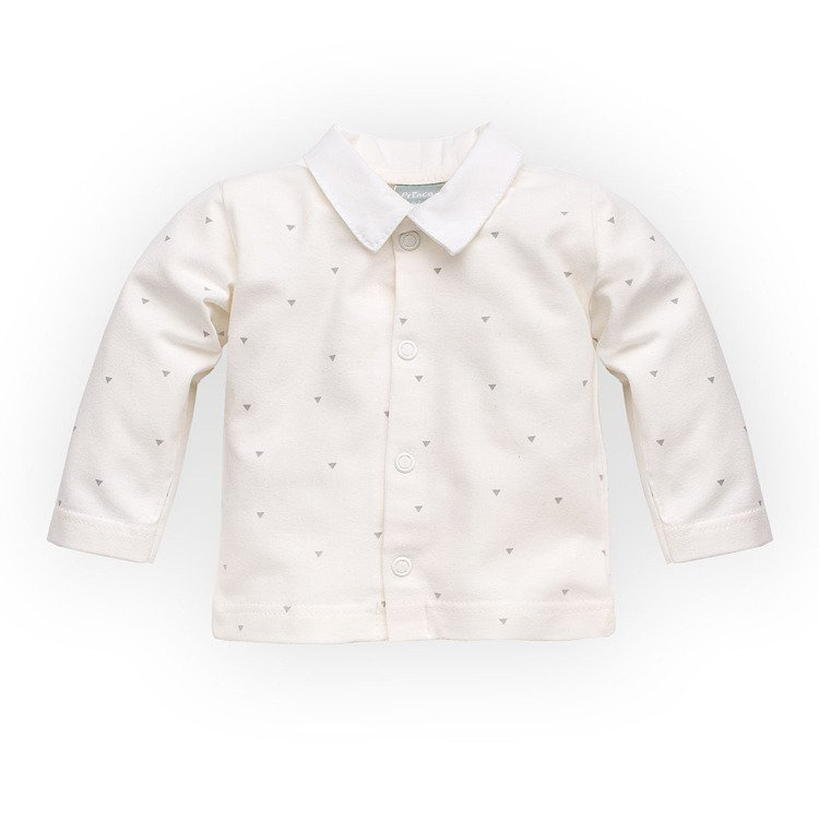 Wykonany z mięciutkiej bawełny kaftan w kolorze écru. Przyjemny w dotyku, rozpinany na całej długości bezniklowymi napkami. Idealnie pasuje do śpioszków z kolekcji Princess