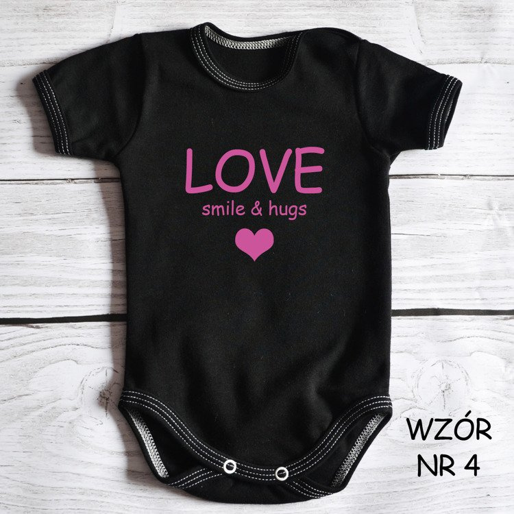 Body krótki rękaw "Love smile & hugs " Moocha czarno-różowy