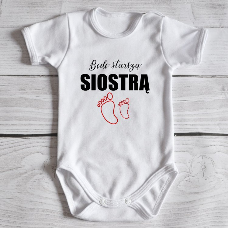 Body krótki rękaw "Będę starszą siostrą " Moocha czarne
