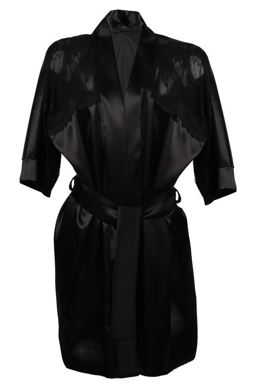 Elegancki satynowy szlafrok. Przód podomki ozdobiony delikatną koronką, która w całości dodaje uroku i zmysłowości. Przeplatany paskiem satynowym, który idealnie dopasowuje się do sylwetki, uwydatniając atuty kobiecego ciała.