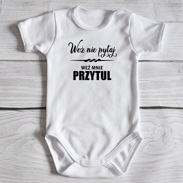 Body krótki rękaw "Weź nie pytaj weź mnie przytul ver.2" Moocha białe