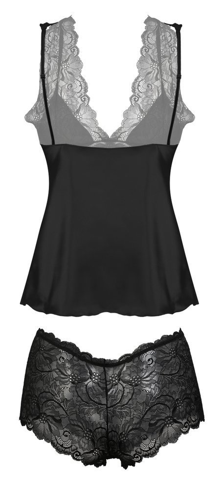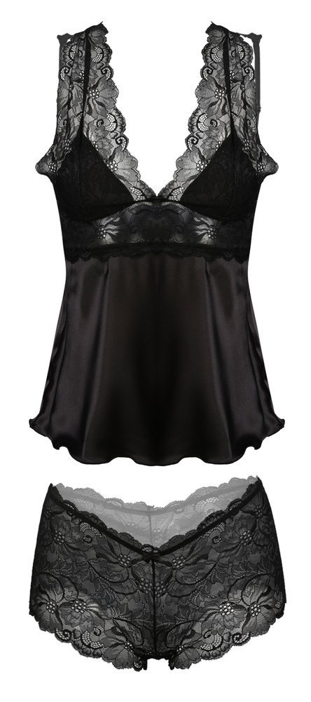 Koszulka wykonana z delikatnej satyny natomiast góra wykończona z kwiecistej koronki.
