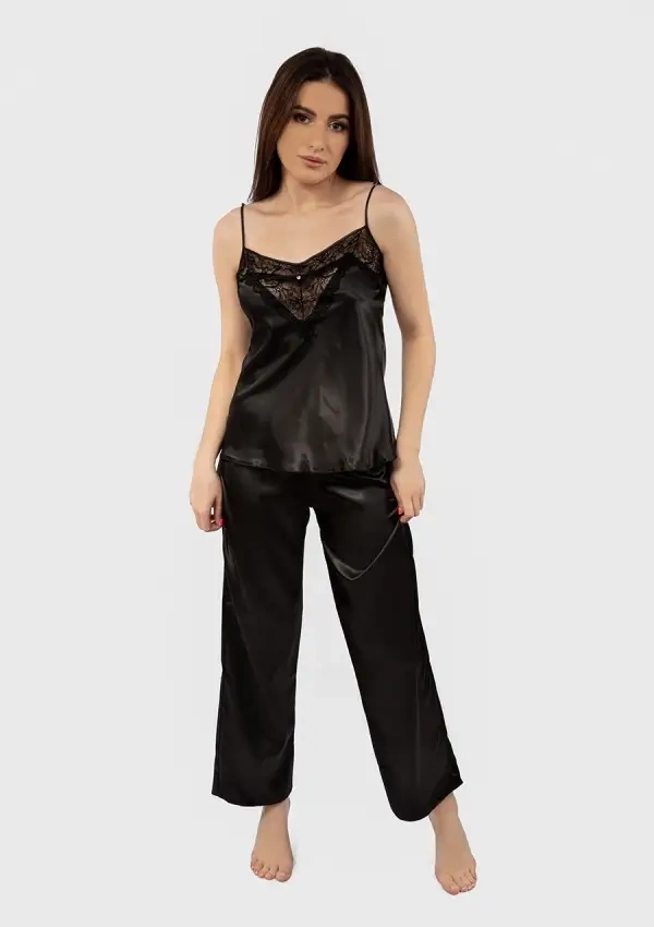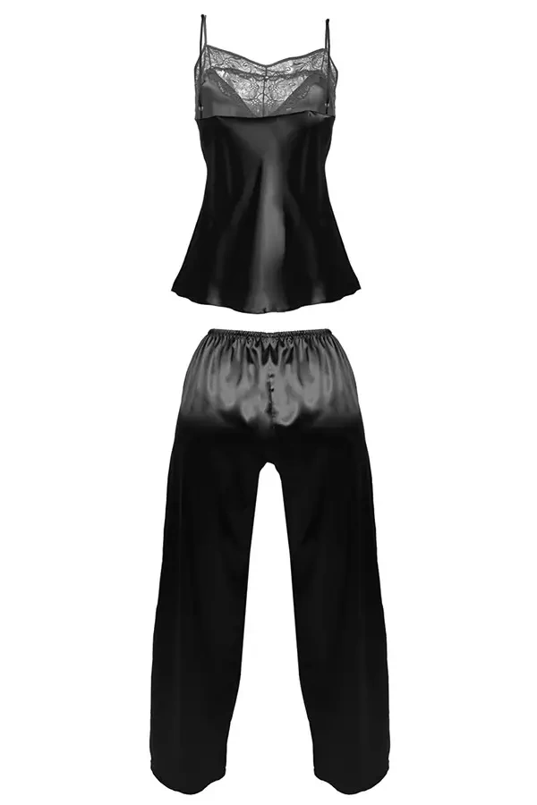Satynowy komplet CAROLINE składający się z koszulki oraz długich spodni.