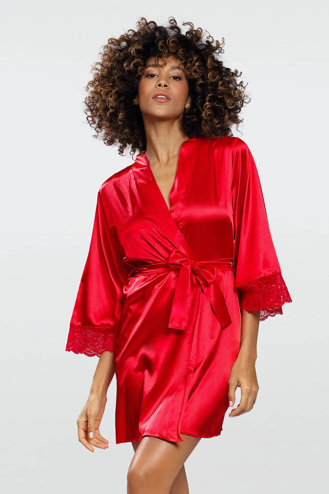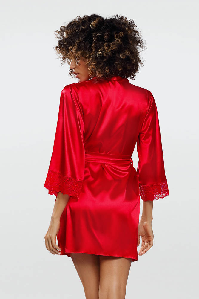 Belinda Satynowy Szlafrok Damski DKaren - czerwona