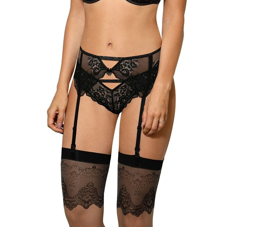 Biustonosz z miękkimi koronkowym miseczkami, linię dekoltu zdobią paseczki, w górnej części posiada koronkową aplikację, która odpina się z ramiączkami. W zestawie komplet gładkich ramiączek.
