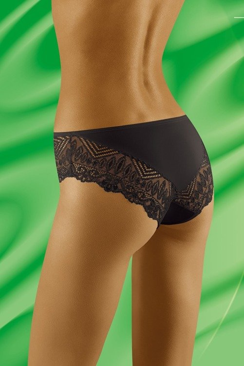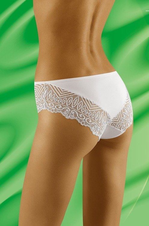 Figi damskie pełne, zabudowane wykonane z wysokiej jakości gładkiej mikrofibry w połączeniu z efektowną koronką w geometryczne wzory.
