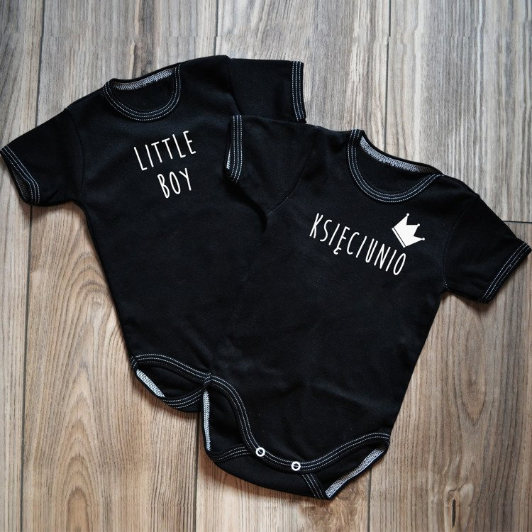 Dwupak body krótki rękaw "Little boy, kięciunio" Moocha czarne