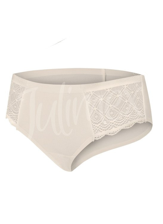 Figi damskie o klasycznym kroju z ultracienkim wykończeniem brzegów w technologii INVISIBLE_LINE. Bezuciskowe, nie odznaczają się pod ubraniem. Przód zdobią koronkowe wstawki.