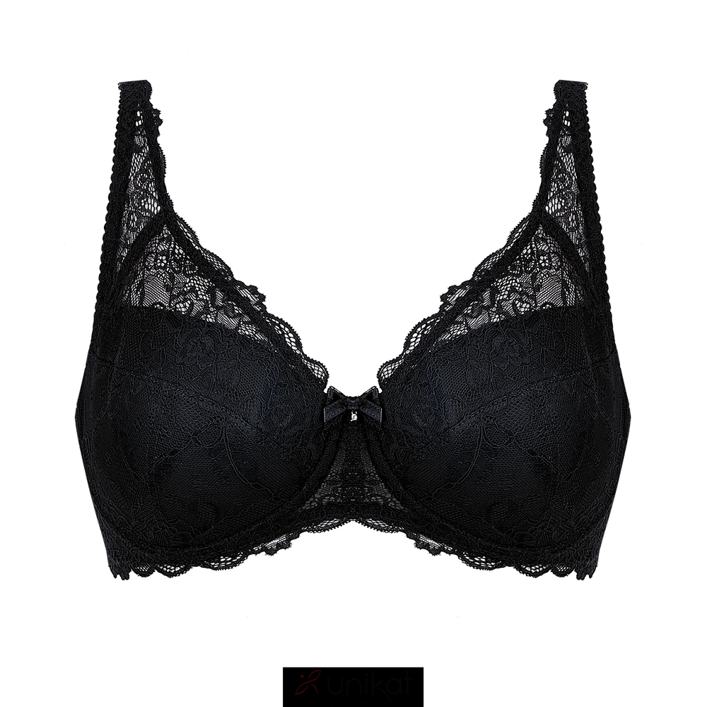 Usztywniany delikatną pianką model biustonosza, który rewelacyjnie zbiera i stabilnie utrzymuje ciężar nawet obfitych piersi. Stylowa koronka pokrywająca miseczki oraz koronkowe boczki dodają całości niesamowitej lekkości i subtelności.