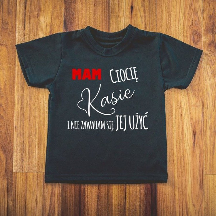 Koszulka dziecięca krótki rękaw "MAM ciocię i nie zawaham się jej użyć" Moocha czarny