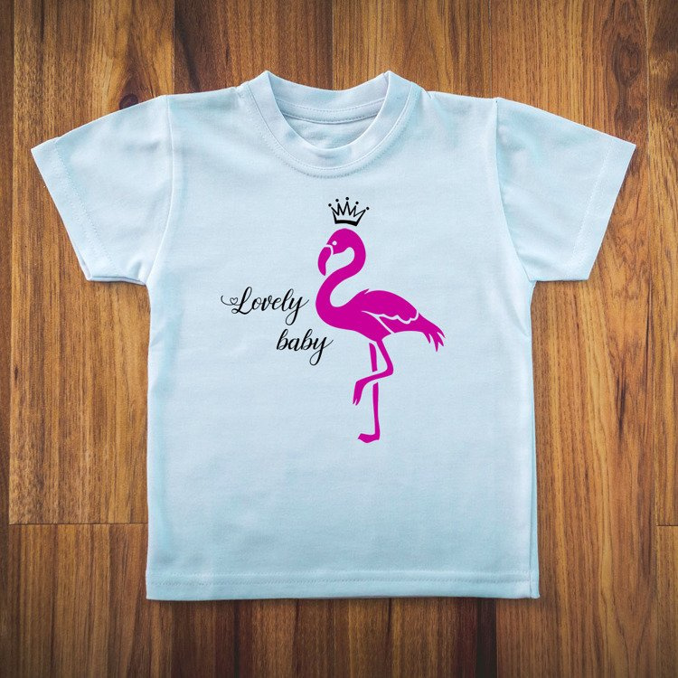 Koszulka dziecięca krótki rękaw "Flaming z koroną Lovely baby" Moocha biały