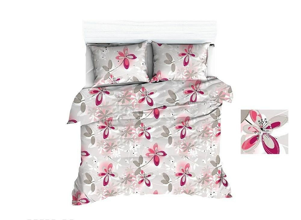 1689E Pościel bawełniana kremowa kwiaty liście szare różowe 1141N Karo