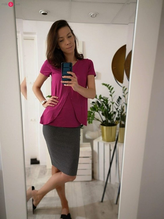 Spódnica ciążowa to idealna baza do ciążowych stylizacji. Można ją nosić na co dzień z trampkami, z balerinami na niezobowiązujące spotkania i do szpilek na większe wyjścia. Miękka dzianina nie powoduje ucisku oraz daje swobodę ruchu. Niski pas typu "jodełka" jest niezwykle wygodny, bo nie podrażnia skóry na brzuchu, która staje się szczególnie wrażliwa w ciąży. To najlepsze rozwiązanie na cieplejsze, wiosenno-letnie dni.