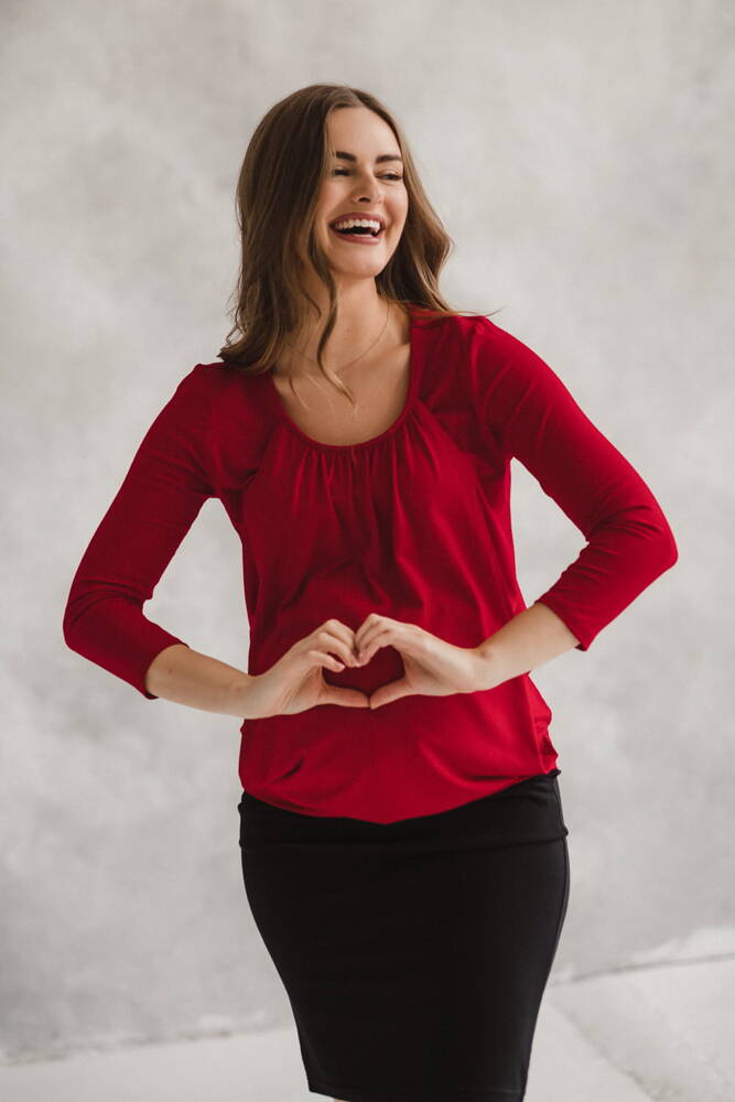 Bluzka ciążowa i do karmienia Kangaroo z rękawem 7/8 Milk&Love karminowa
