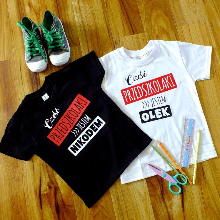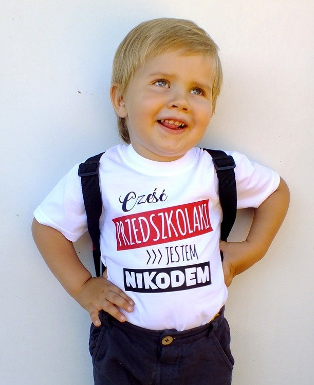 Koszulka dziecięca krótki rękaw "Cześć PRZEDSZKOLAKI z imieniem" Moocha biały