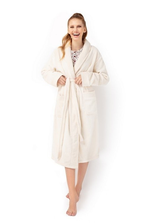Zmysłowy szlafrok damski wykonany z wysokogatunkowego miękkiego materiału,wiązany w pasie.