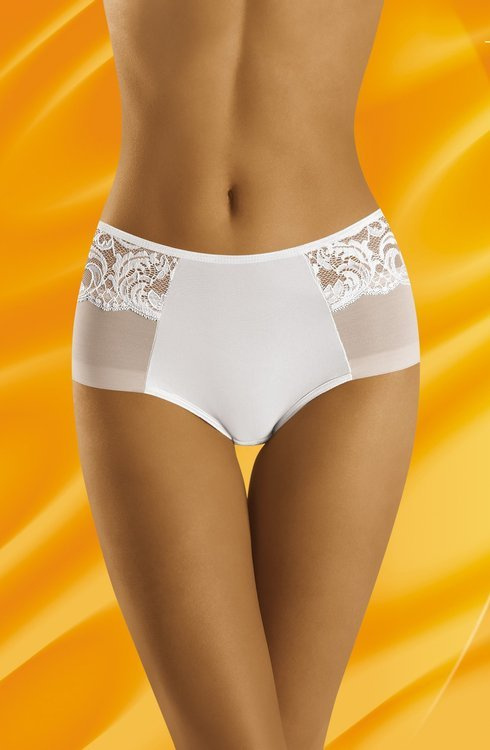 Figi damskie wykonane z delikatnej siateczki oraz efektownej koronki, przód z gładkiej mikrofibry.