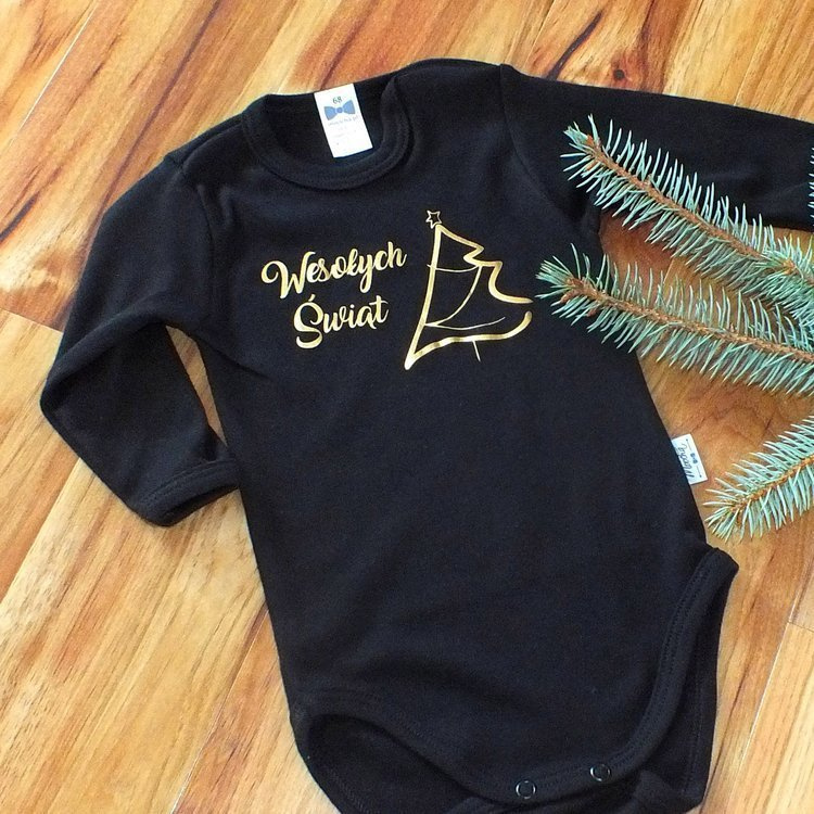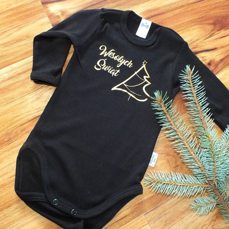 Body długi rękaw "Wesołych Świąt z choinką" Moocha czarny
