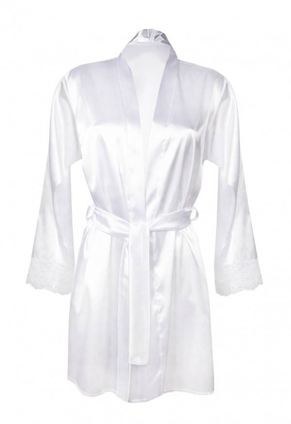 Podomka wykonana z lejącej satyny, o komfortowym kroju jest obowiązkowym elementem garderoby eleganckiej kobiety i sprawdzi się w każdej sytuacji. Efektowne rękawy zakończone śliczną, delikatną koronką. Ta krótka elegancka satynowa podomka posiada pasek, który seksownie podkreśla talię.