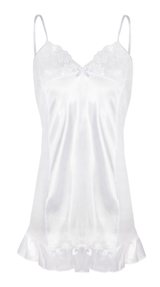 Zwiewna satynowa koszulka. Przód halki tworzą dopasowane, uszyte z koronki miseczki, które zapewniają komfort noszenia a jednocześnie zmysłowo eksponują dekolt.