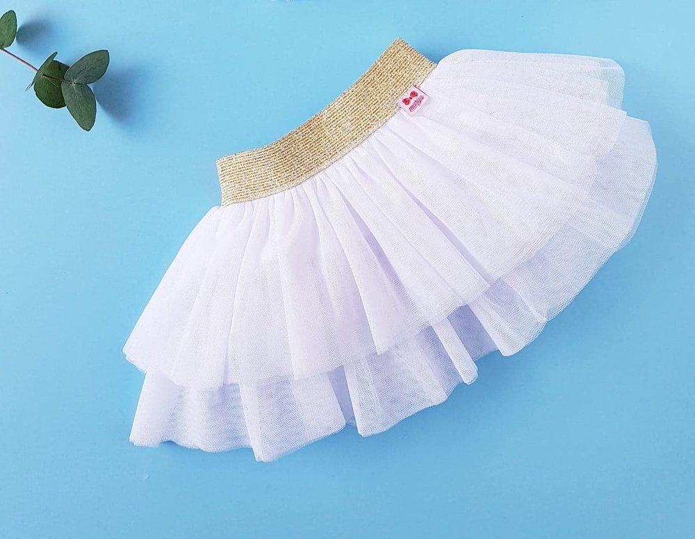 1826T Santa Spódniczka z tiulu ze złotą gumką Marija - białyCena: 55,00 zł / szt.