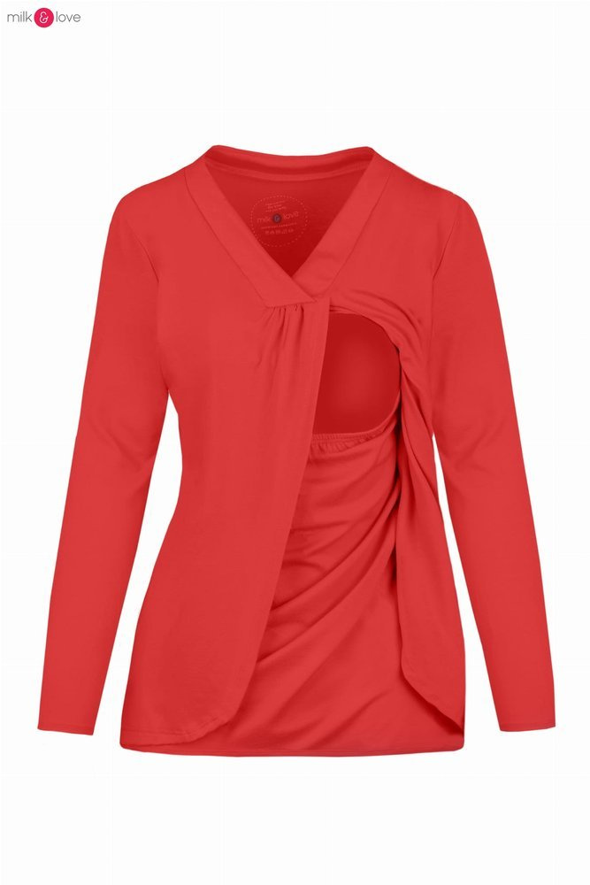 Bluzka ciążowa i do karmienia długi rękaw Buzzy Bee Milk&Love czerwona