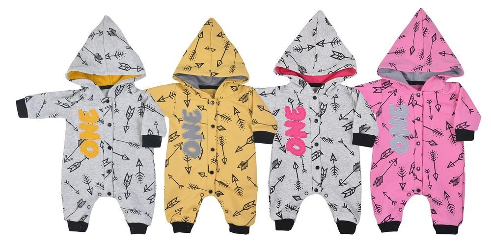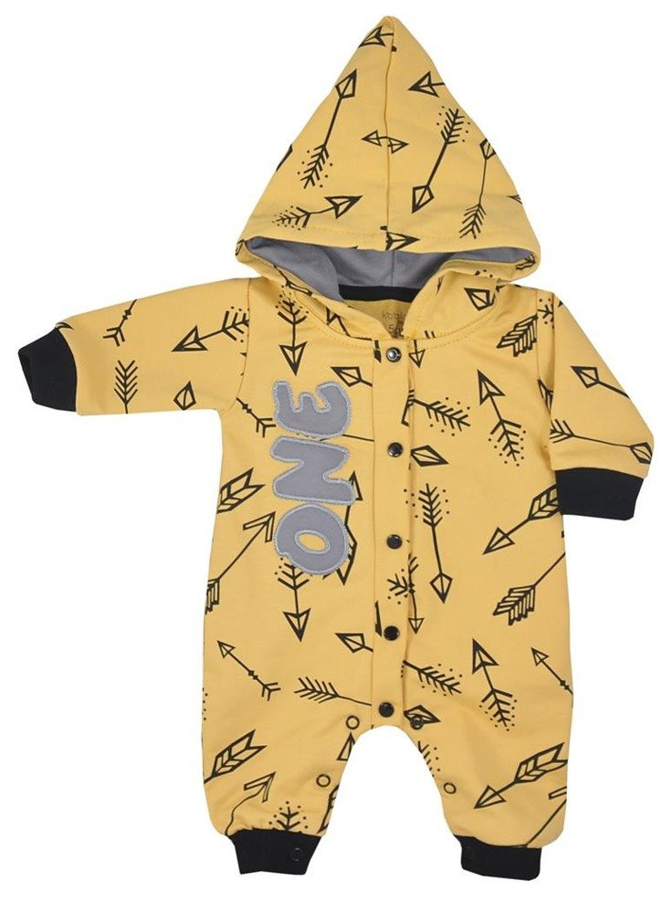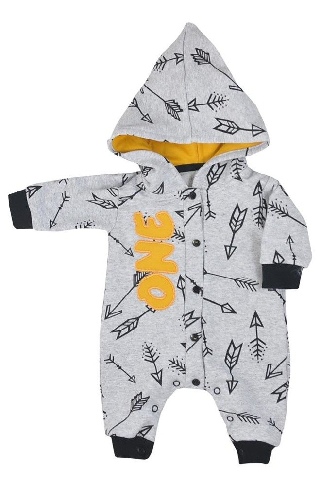 Pajacyk dresowy bez stópek , z kapturem. Wykonany ze 96% bawełny. Z małą aplikacją.