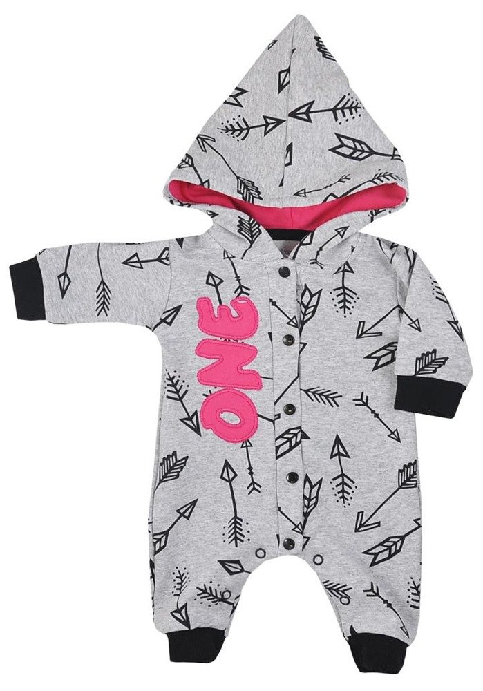 Pajac dresowy z kapturem "ONE" Koala - szary-różowy