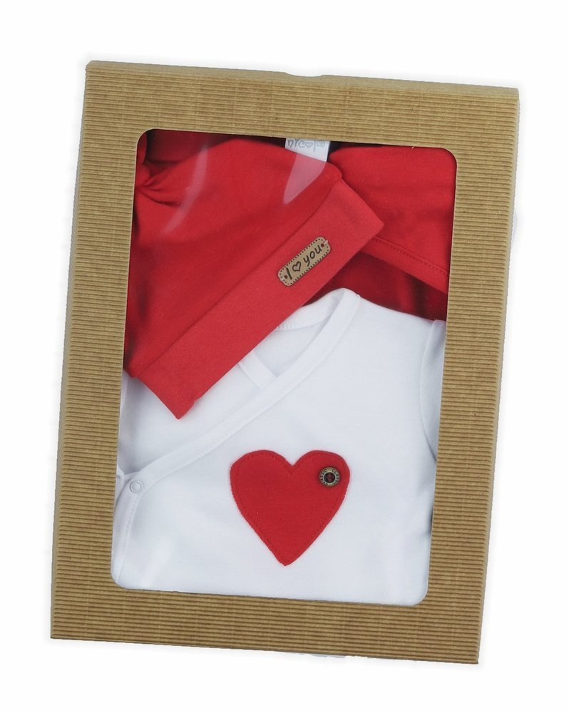 163202 Komplet czapka, body, apaszka i spodnie "Walentynki" Nicol
