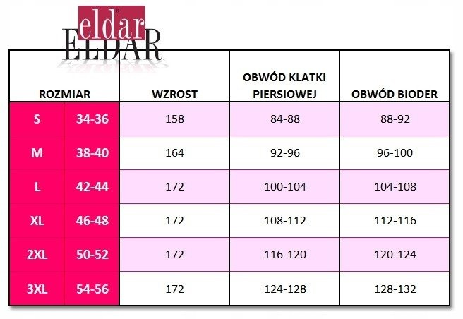 | Rozmiar | Wzrost | Obwód klatki piersiowej | Obwód bioder |