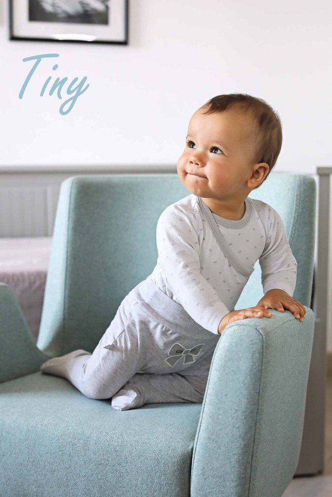 Półśpiochy z kolekcji "Tiny" uszyty z miękkiej i przyjemnej w dotyku dzianiny. . W pasie znajduje się ściągacz i guma nie uwierające brzuszka dziecka.