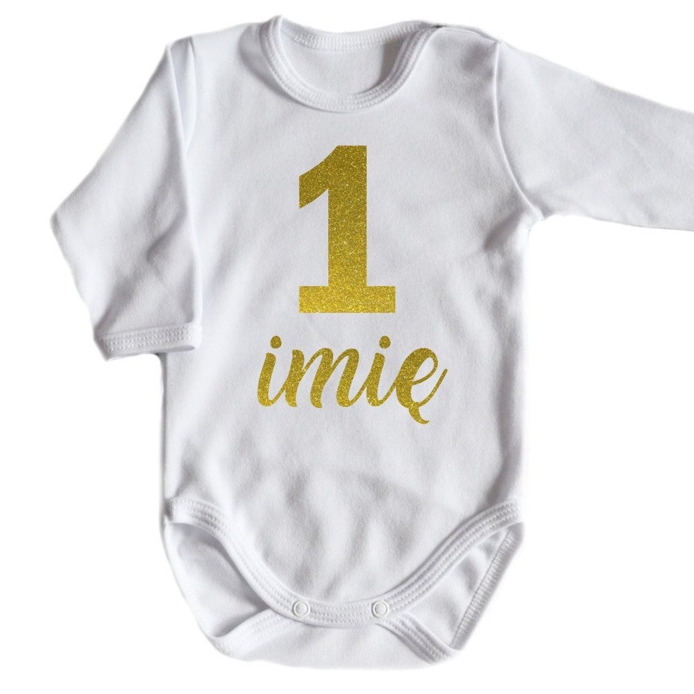 Body długi rękaw "ROCZEK z imieniem" złoty napis Moocha biały