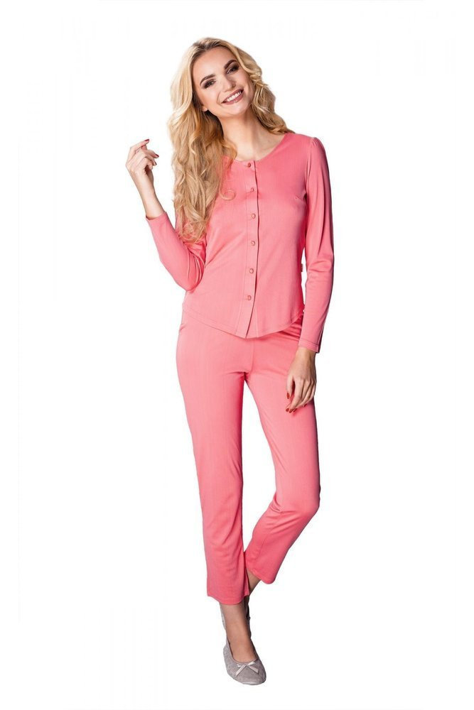 Piżama Maria to przede wszystkim klasyka i wygoda. Rozpinana góra na małe guziki sprawia, że jest to model o bardzo praktycznym wykorzystaniu. Elegancki krój i gładka dzianina jaką jest niezastąpiony jedwab wiskozowy to 100% gwarancja i satysfakcja użytkowania przez długie lata. Piżama posiada długi rękaw oraz spodnie z nogawkami do kostek oraz delikatną gumkę w pasie. Idealna na jesienno-zimowe noce.