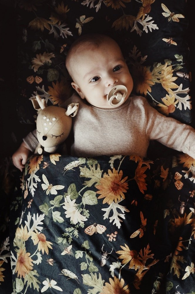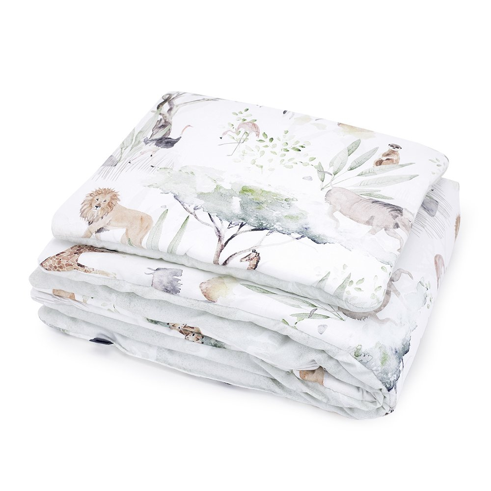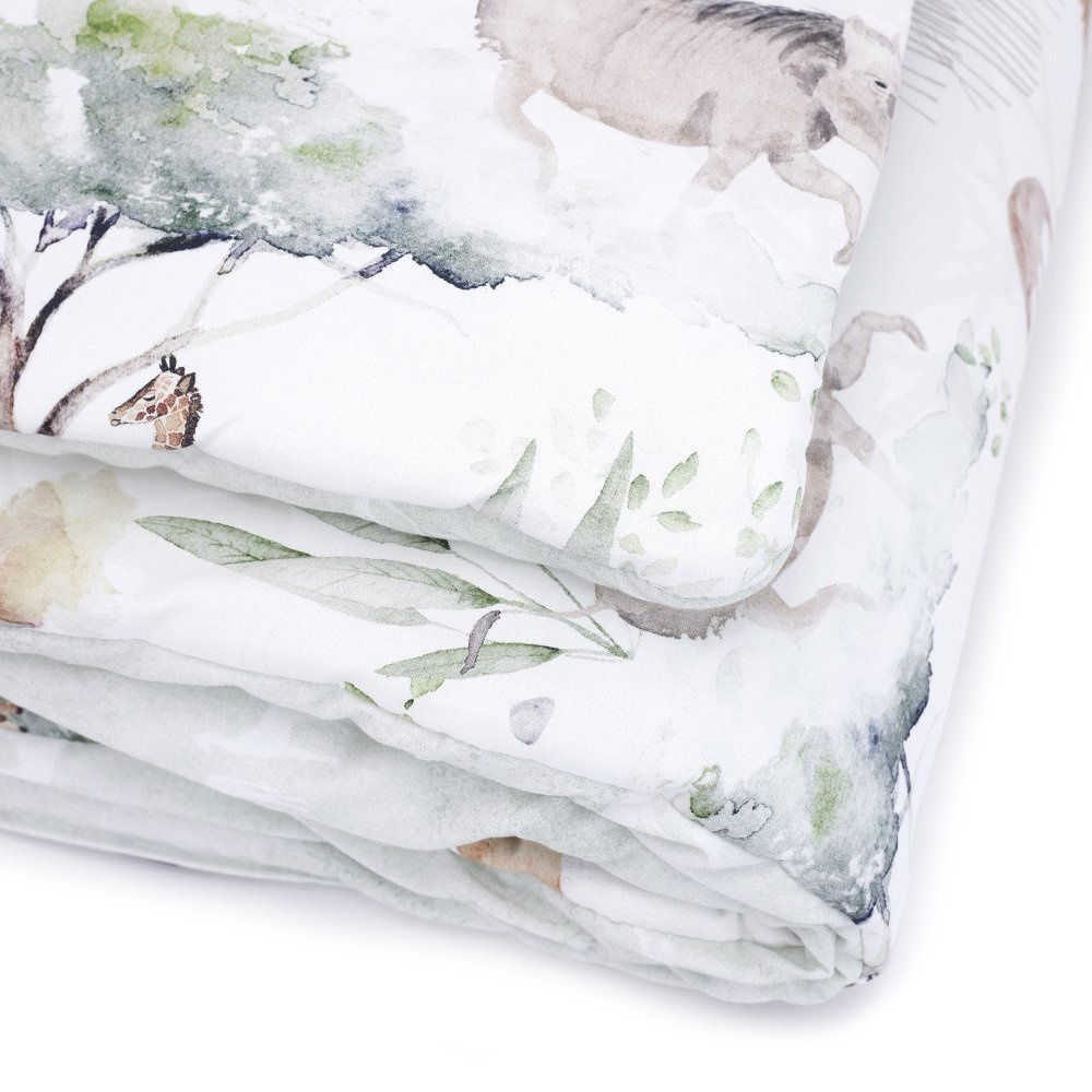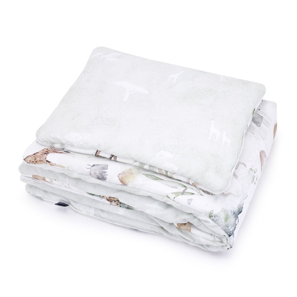 Cieplutki komplet pościeli z wszytym wypełnieniem, doskonały do kołyski, łóżeczka i na popołudniową drzemkę.