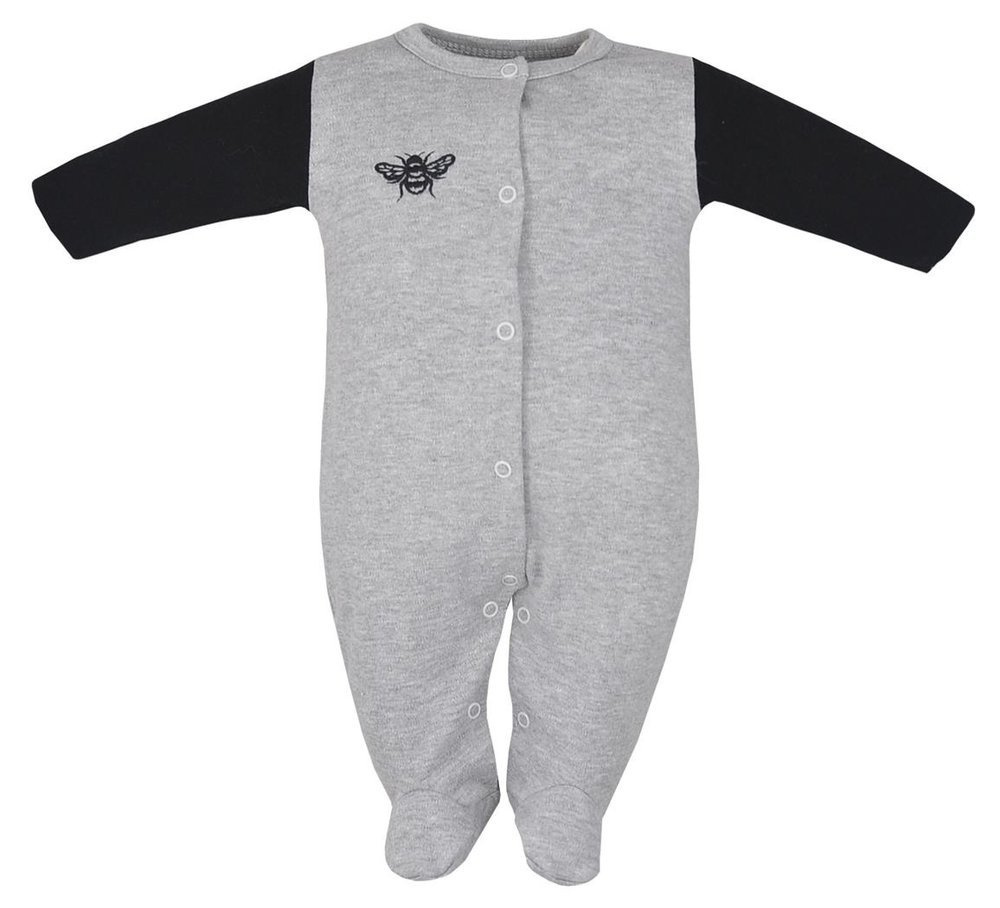 Pajacyk niemowlęcy z ozdobnym nadrukiem wykonany z 100 % bawełny.