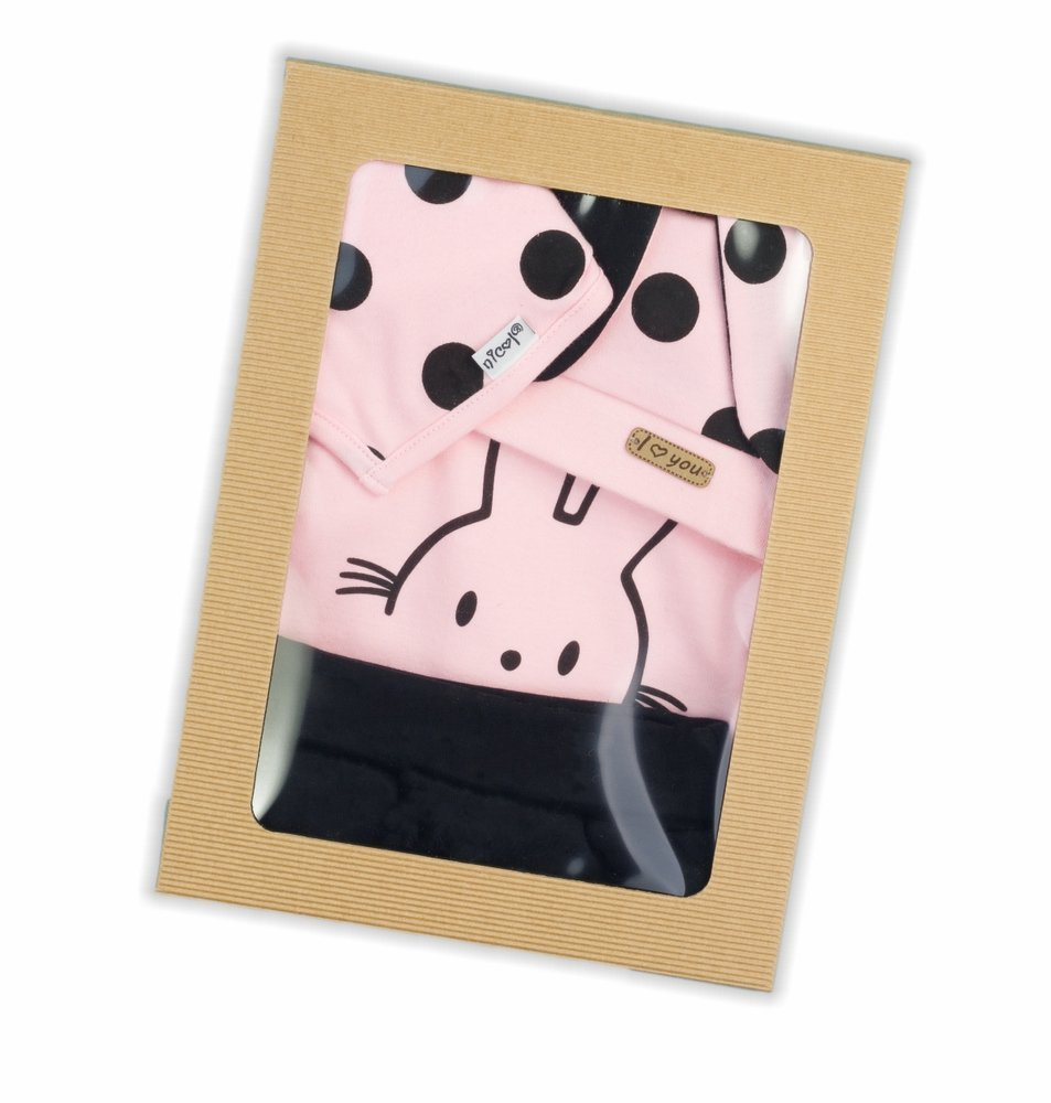 163381 Komplet czapka, apaszka, body i spodnie "Bunny Groszki" Nicol - róż