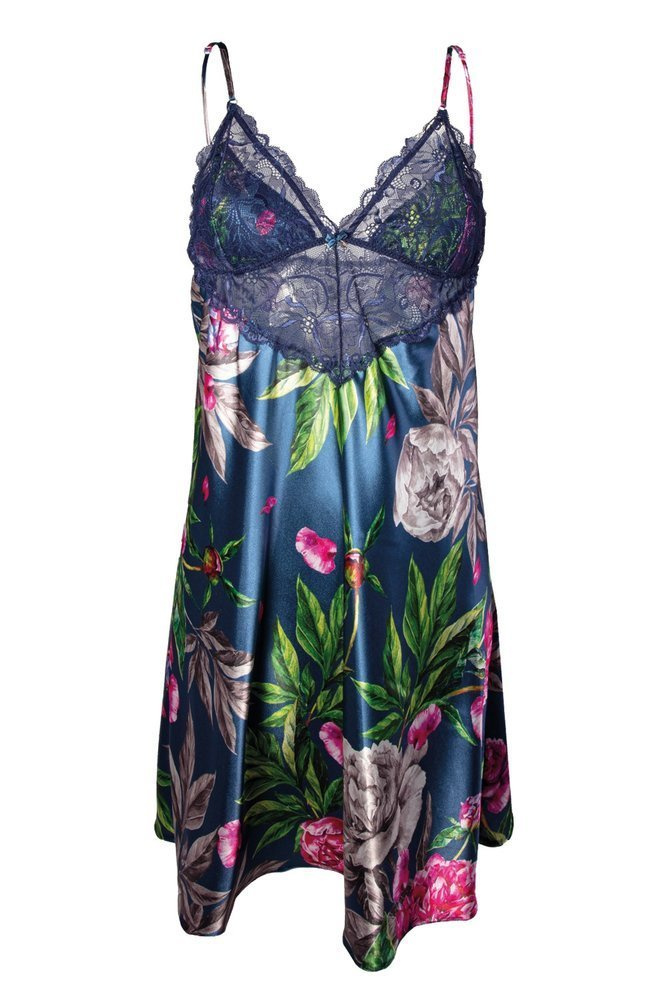 Zwiewny dotyk satyny utuli Cię do snu. Haleczka wykonana z drukowanej satyny natomiast góra koszulki wykończona efektowną koronką .