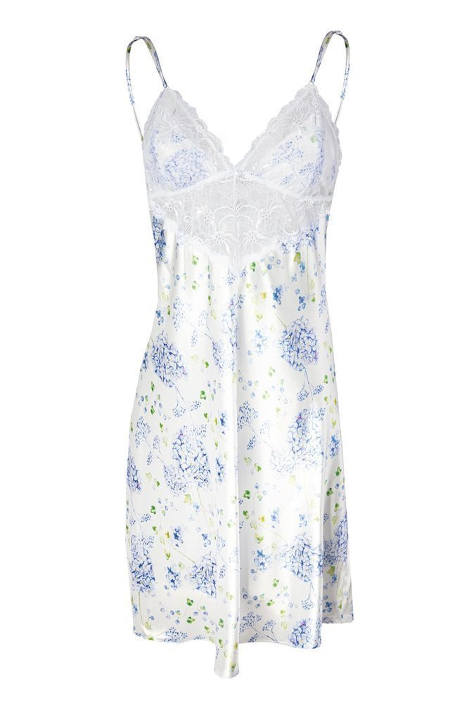Zwiewny dotyk satyny utuli Cię do snu. Haleczka wykonana z drukowanej satyny natomiast góra koszulki wykończona efektowną koronką .