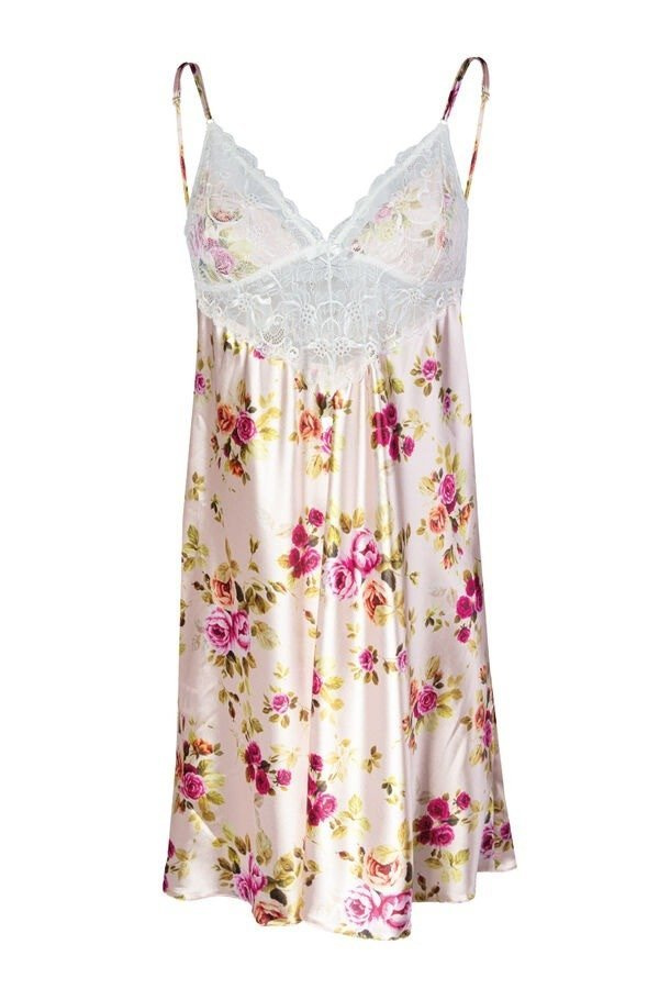 Zwiewny dotyk satyny utuli Cię do snu. Haleczka wykonana z drukowanej satyny natomiast góra koszulki wykończona efektowną koronką .