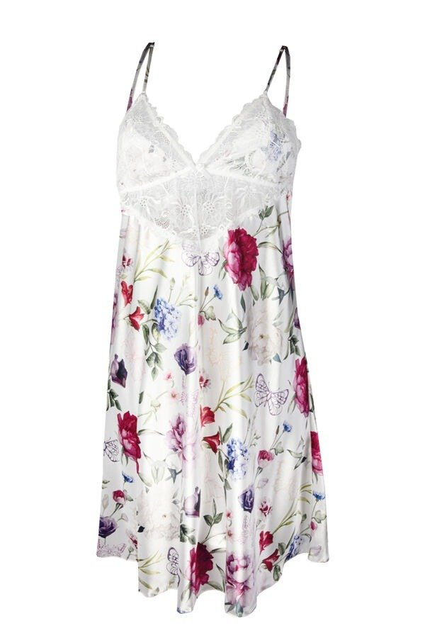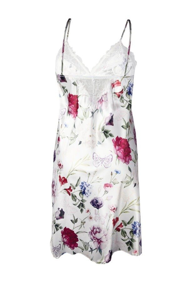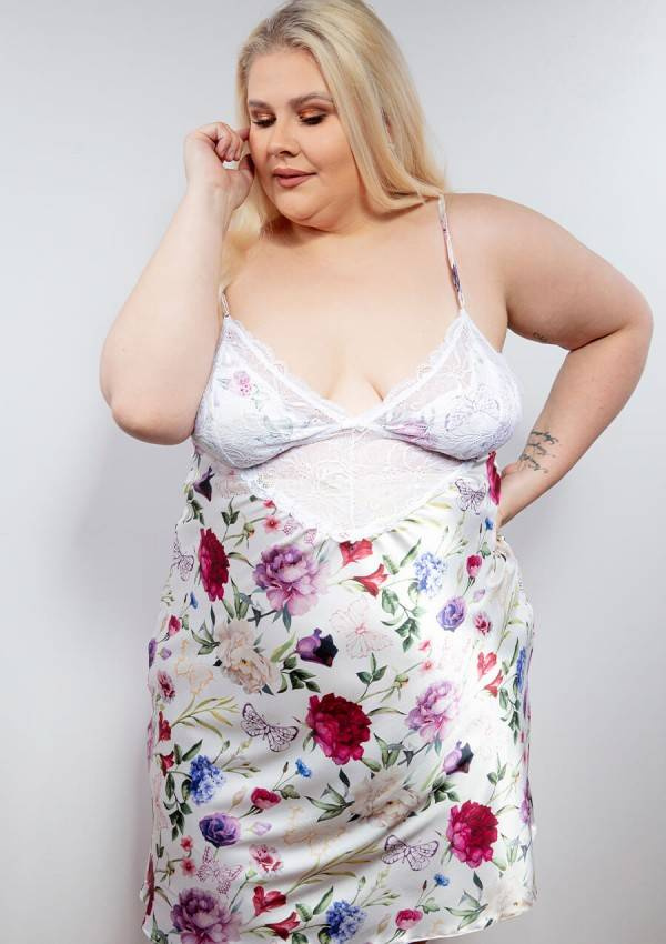 Zwiewny dotyk satyny utuli Cię do snu. Haleczka wykonana z drukowanej satyny natomiast góra koszulki wykończona efektowną koronką .